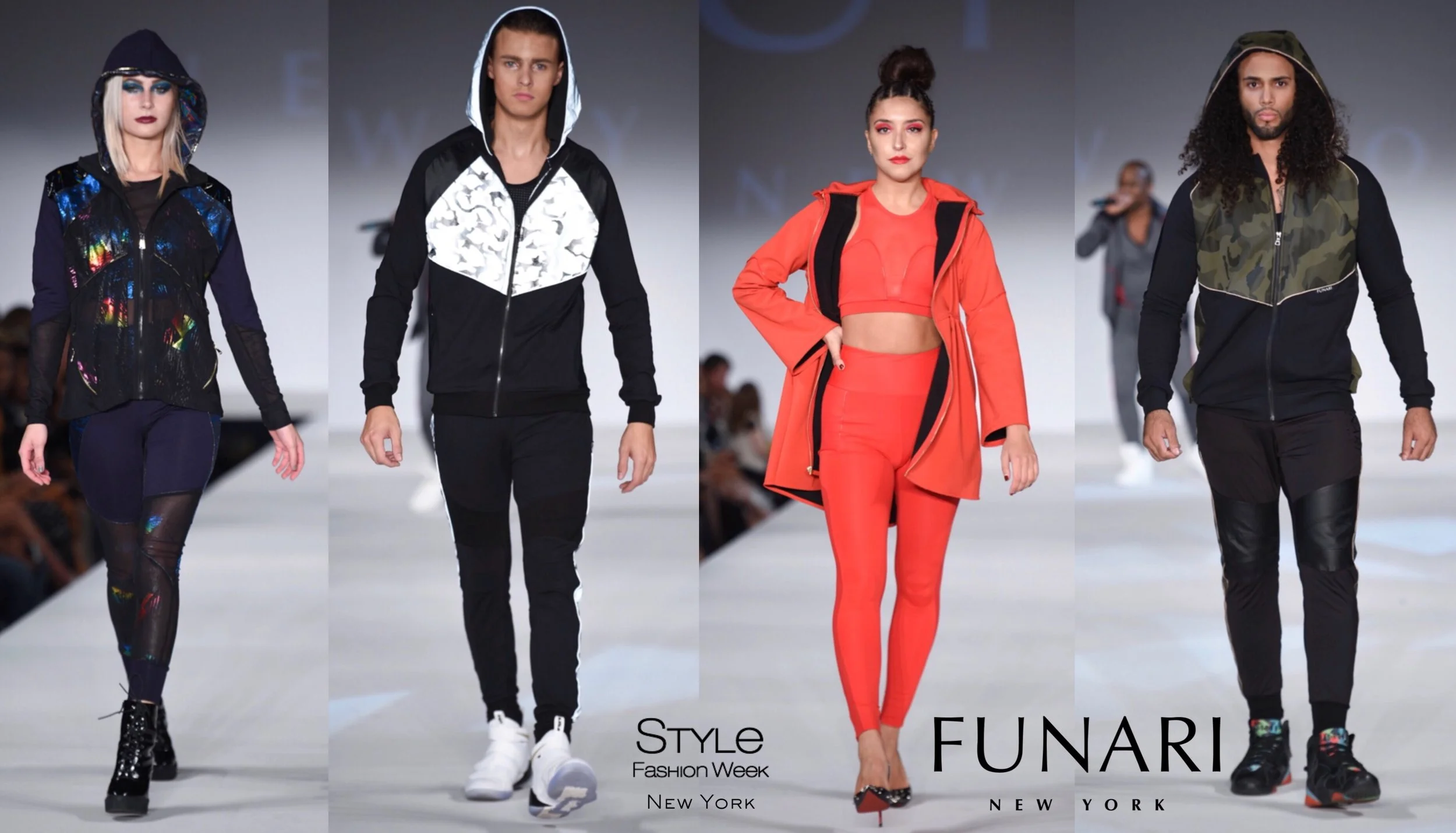 This season, the FUNARI Performance collection hit the runway in FULL FORCE ! The collection features Men’s and Women’s Performance clothing that can go from the gym to the night life. With Faux leather, Reflective clothing, and movable, breathable fabrics, the clothing offers versatility like no other.